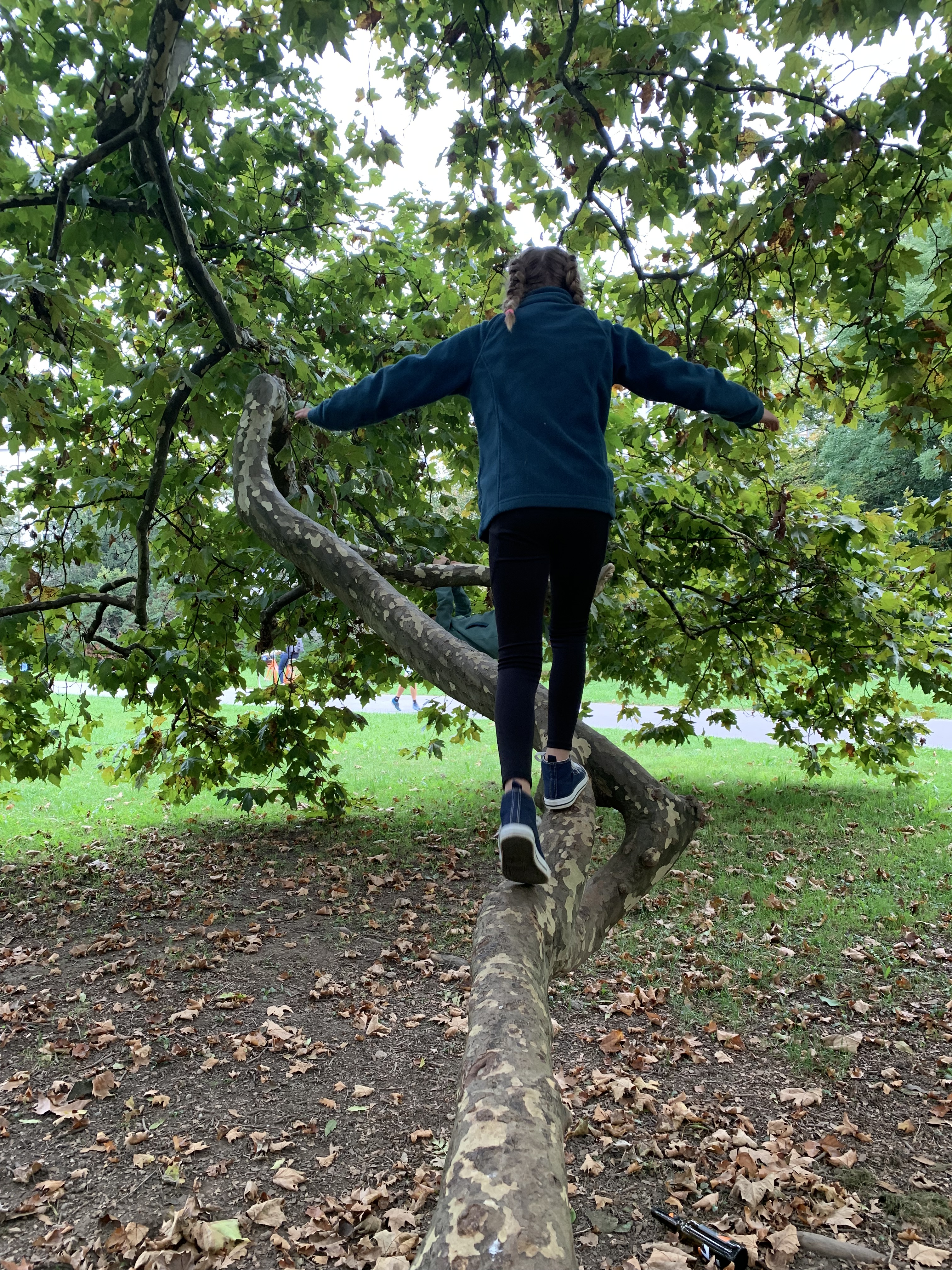 After the museum we were sitting outside on the steps and I saw a cool tree to climb. We spent a lot of time climbing up to a high point, and I did it. I got to the top after a few tries. At first we tried to run up the limb and then cling to it before shimmying the rest of the way. But we realized there was a better way. Mom had to catch me a few times.